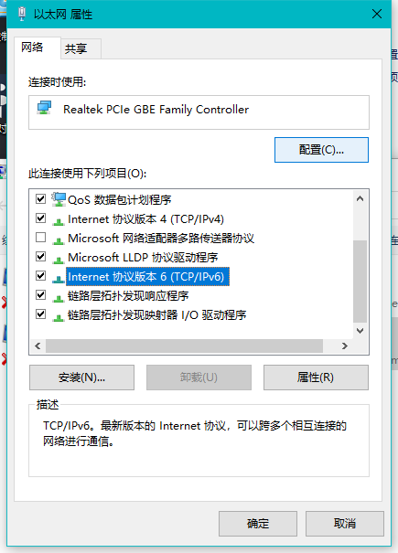 找到接入网络的那个网卡右键属性勾选 Internet 协议版本6(TCP/IPv6)